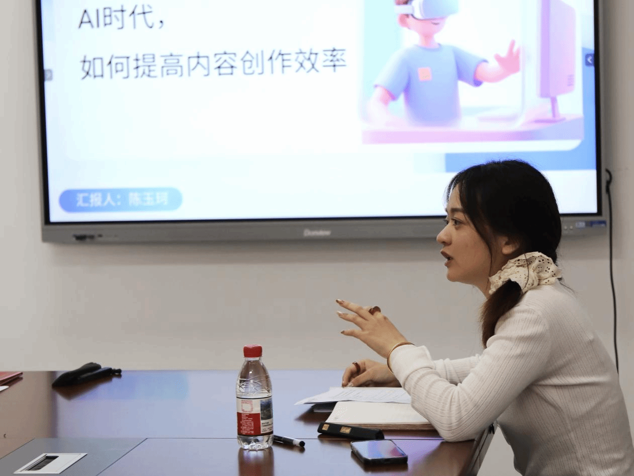 会议第二部分为专题培训环节,陈玉珂以《AI时代,如何提高科学传播与内容创作效率?》为题,带来了一场内容丰富、见解独到的专题讲座。她结合实例,讲解了人工智能在内容生成、视觉设计、传播优化等方面的应用,为融媒体中心成员提供了宝贵的实战指导。