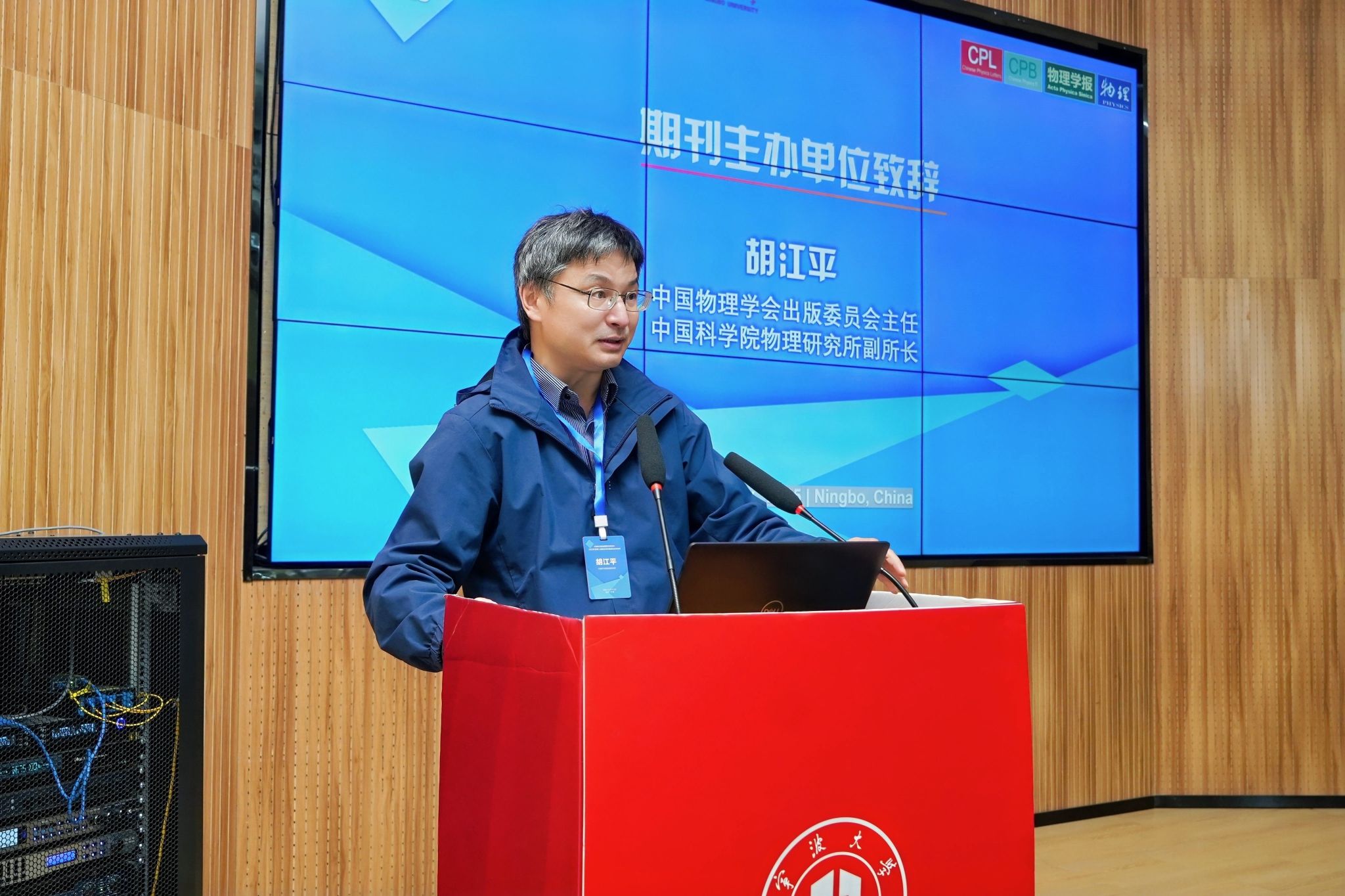 随后,中国物理学会出版委员会主任、中国科学院物理研究所副所长胡江平代表主办单位致辞,他代表编委会和编辑部对宁波大学以及*成人网址 对本次会议的大力支持表示感谢,他回顾了四刊创办的初心与使命,强调了其在构建中国物理学话语体系、服务国家科技自强自强中的战略地位,并对青年编委寄予厚望,期待他们成为期刊创新发展的生力军。