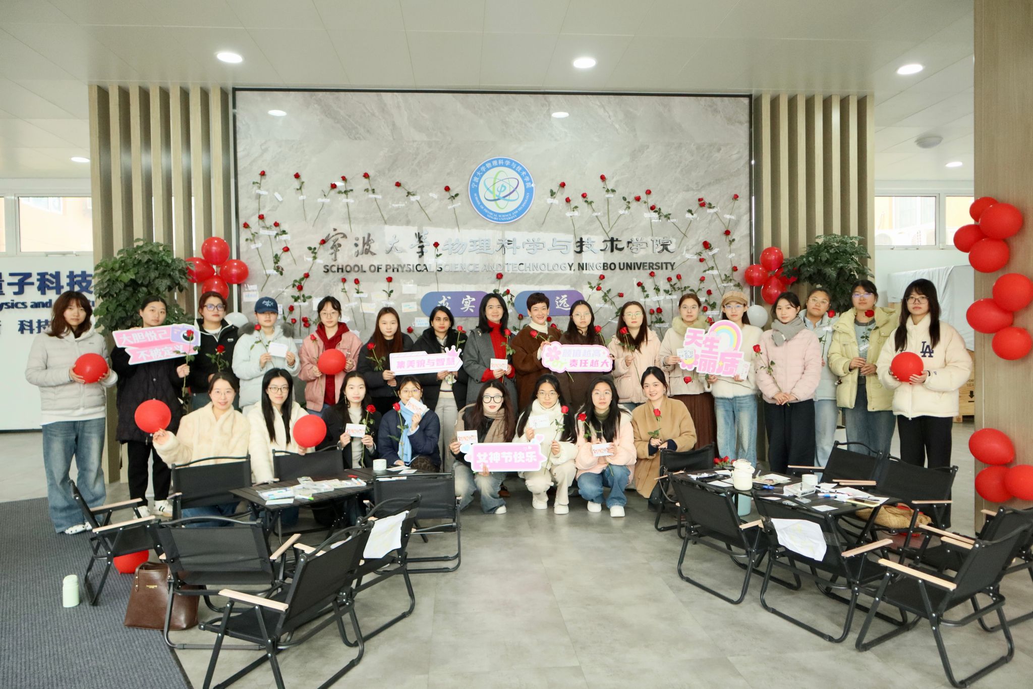 3月6日,*成人网址 在龙赛理科楼正大门开展“心花·怒放”女生节主题活动,活动以“用玫瑰换一封写给自己的情书”为创意,吸引了学院众多女教师、女学生积极参与,为春日校园增添了一抹温暖亮色。