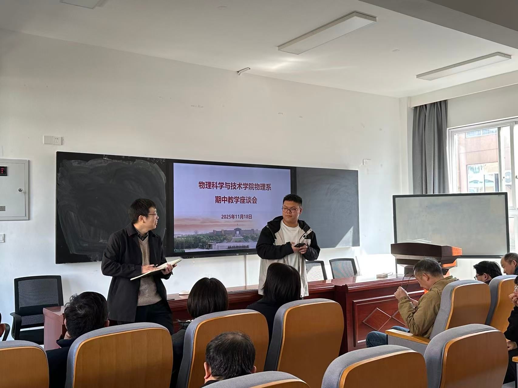 在课程安排与培养方案建设方面,师生围绕课程体系的逻辑性、前沿性与实践性交换意见。同学们提出了课程衔接、课时分配及选修资源等优化建议。物理系重点讨论了经典理论与科研热点的融合,微电子系则关注核心课程内容的深化与广度拓展。各系均表示将认真研究反馈意见,持续优化方案,夯实基础并紧跟学科前沿。